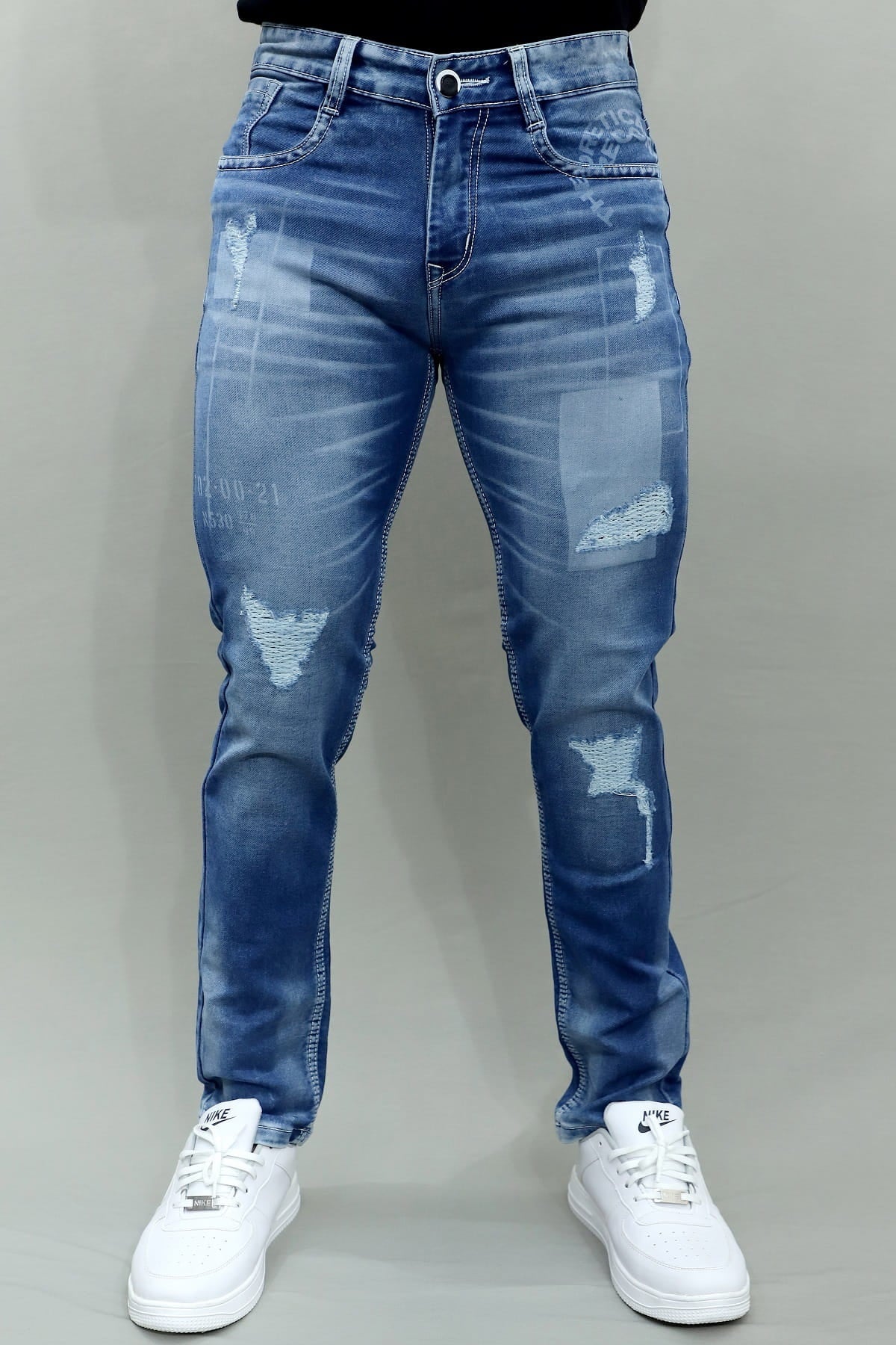 Men's Slim Fit Blue Distressed Stretchable Denim Jeans